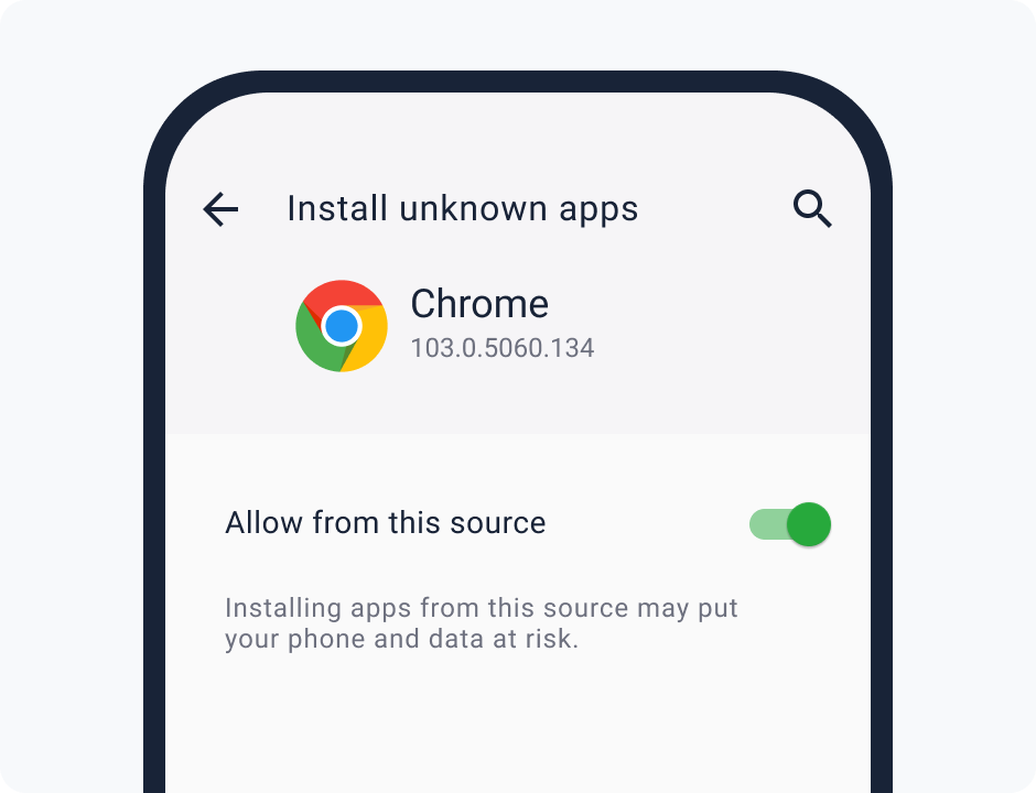 ابحث في إعدادات المتصفح وقم بتفعيل خيار "التثبيت من مصادر غير معروفة".