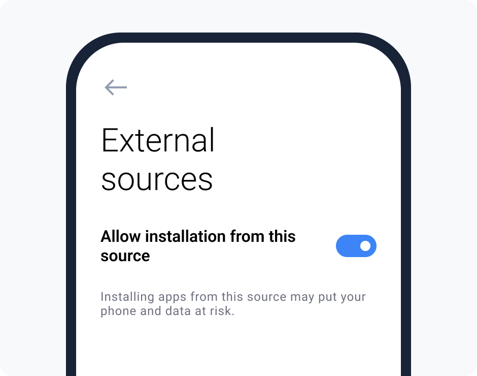 عند ظهور تحذير، انقر على "الإعدادات" وقم بتفعيل "السماح بالتثبيت من هذا المصدر".
