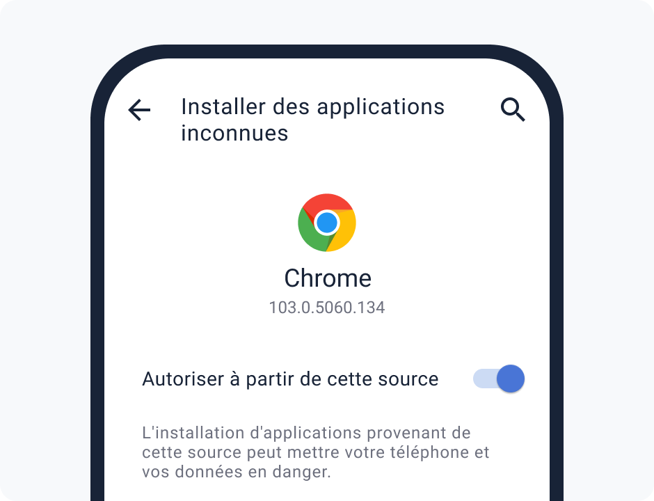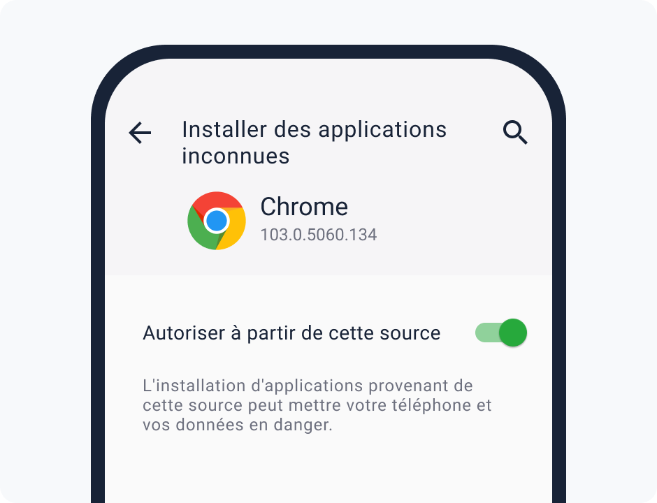 Trouvez et activez l'élément « Installer à partir de sources inconnues » dans les paramètres du navigateur.