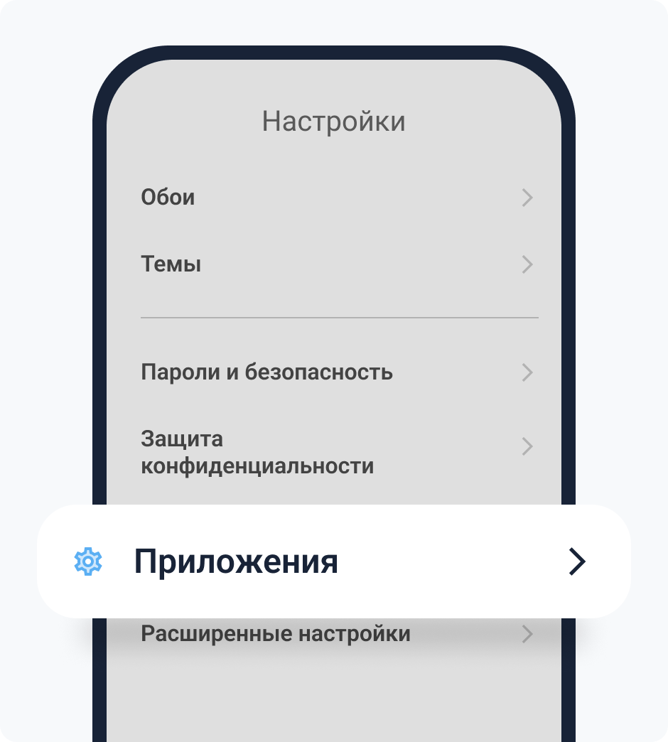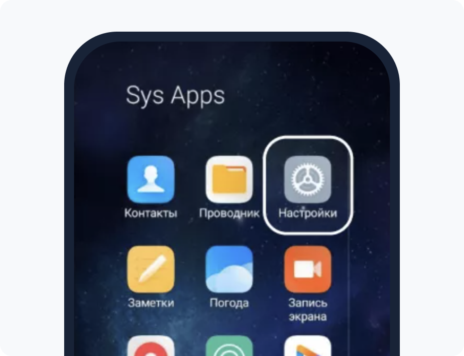 Откройте «настройки» вашего смартфона.