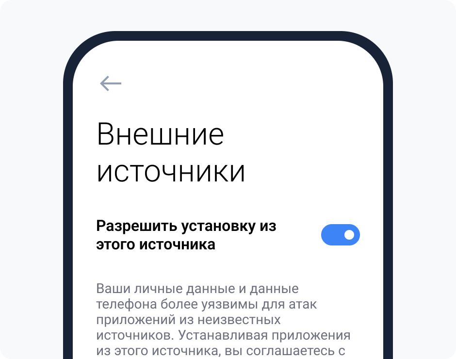 и активируйте пункт «Разрешить установку из этого источника».