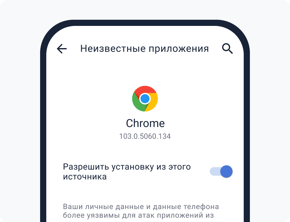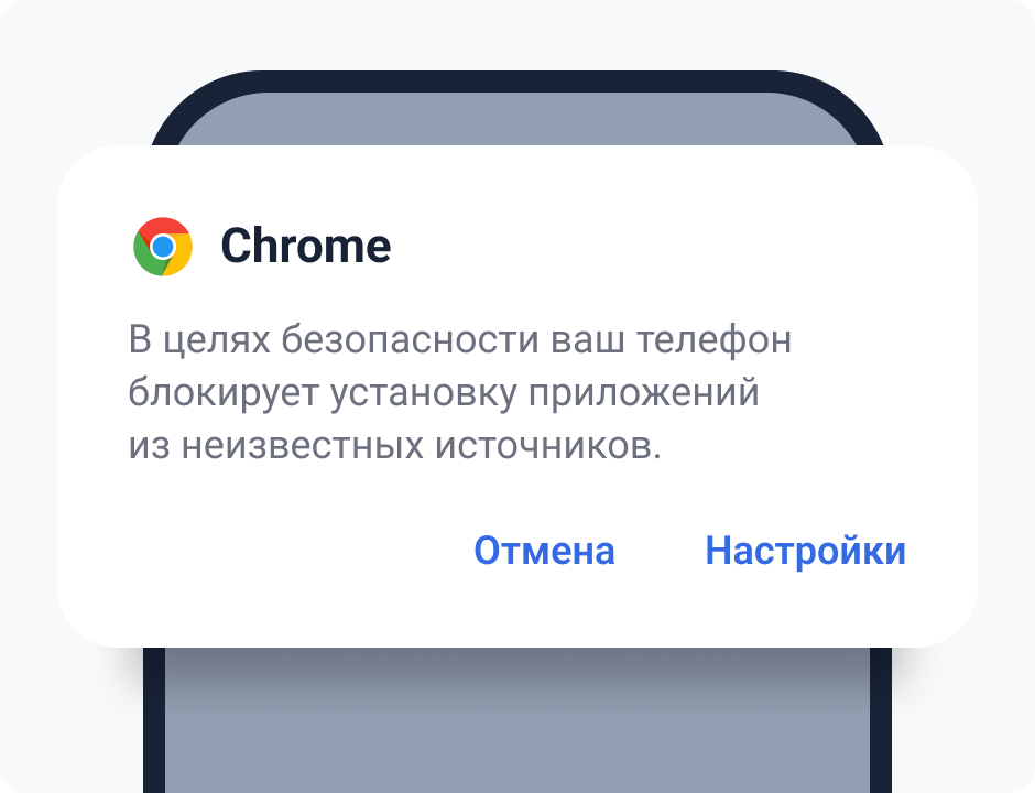 В настройках браузера включите «Установка из неизвестных источников».
